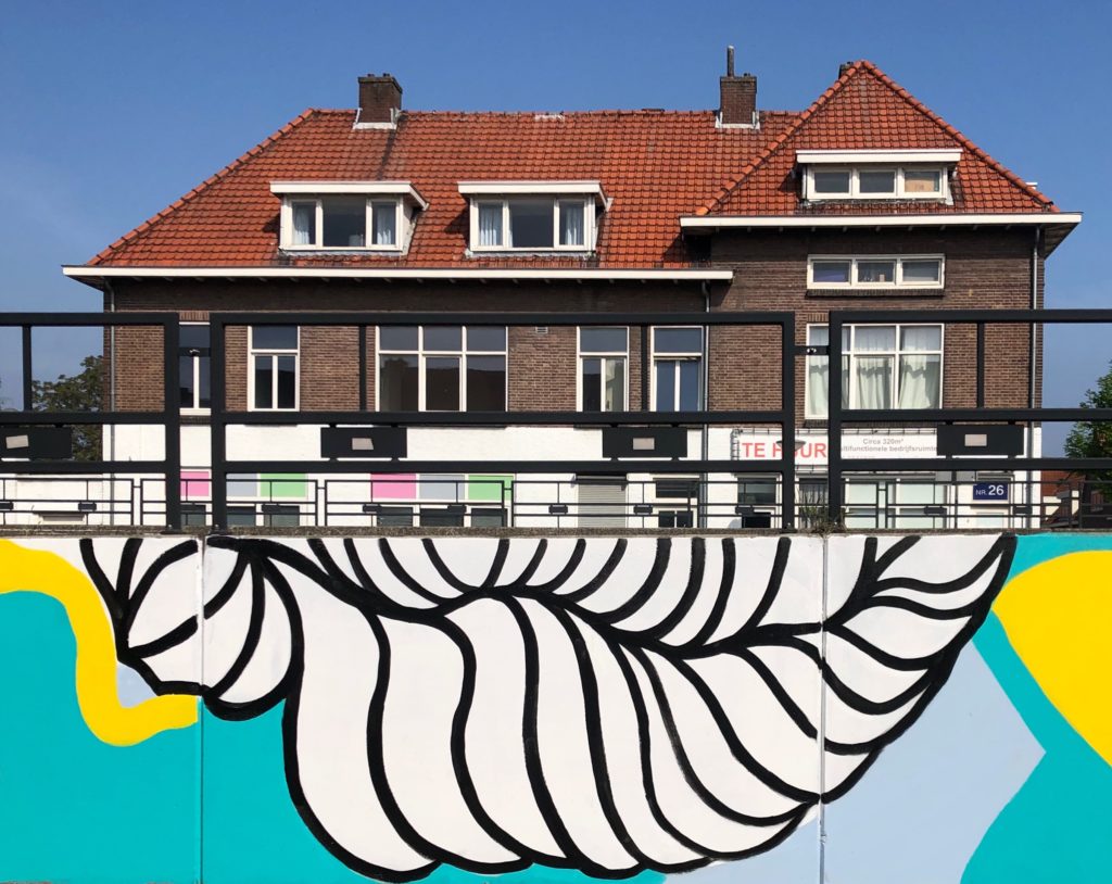 Muurschildering in opdracht van het CKE en in samenwerking/overleg met de bewoners van het Drents Dorp in Eindhoven.