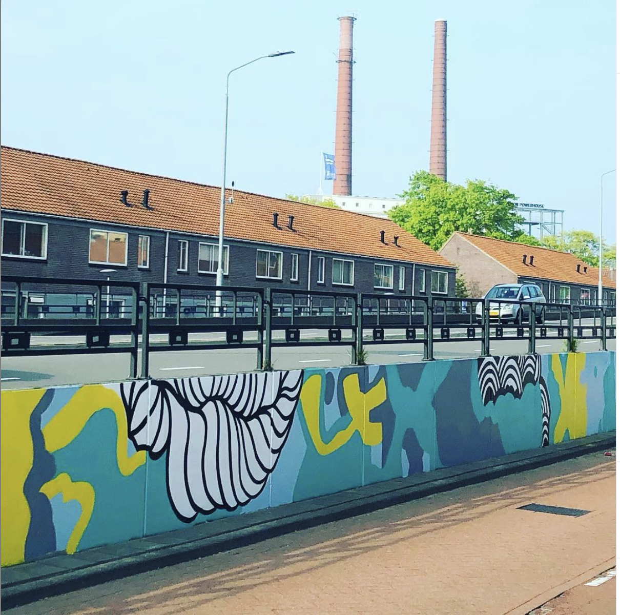 Na een inspiratieavond in het door Piet Hein Eek ontworpen buurthuis ontwierpen Beeldentemmers deze muurschildering van 150!! meter lang. Aan weerszijden van het talud van het Strijps Bultje verschenen deze prachtige kleuren. Aan de ene zijde abstract, aan de andere zijde meer figuratief en verrijkt met een in opdracht geschreven ode aan Eindhoven door Henk van Straten.